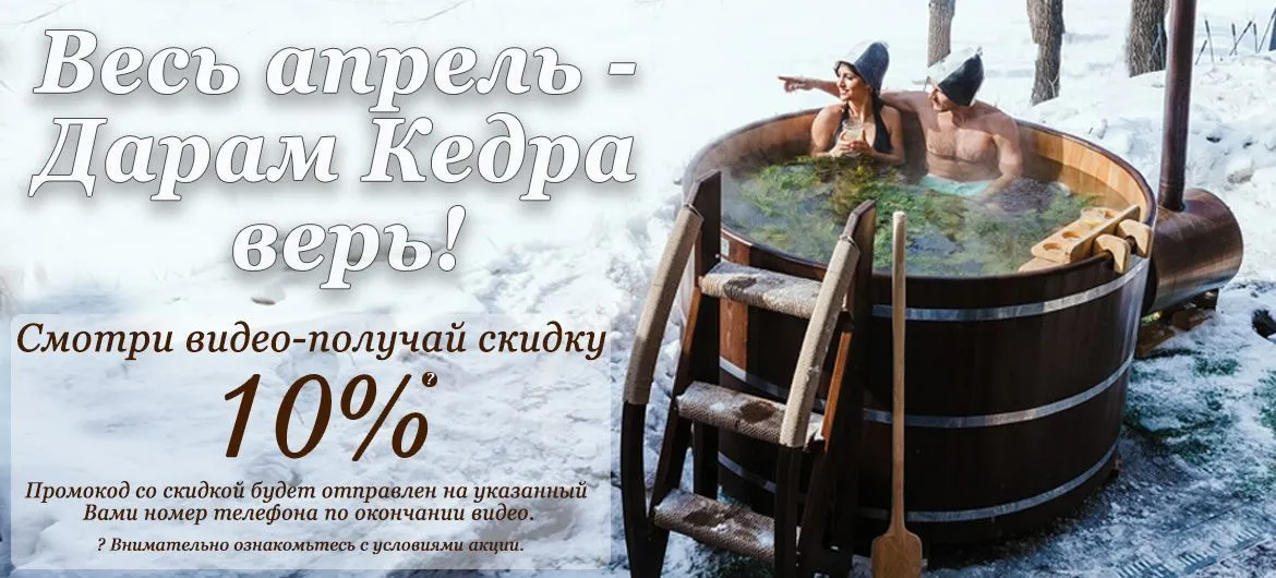 Получай скидку 10% на любое изделие из кедра по промокоду*.