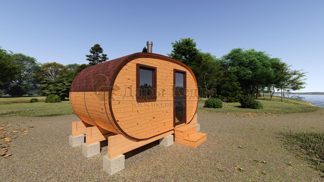 Мобильная баня-бочка с каждым днем набирает все большую популярность благодаря её возможной транспортировки куда угодно: на отдых в лесу, на рыбалку или на побережье реки
