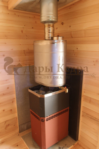 Установка печи с внешней загрузкой позволит сохранить парную в чистоте и сэкономить в ней место. Печь имеет удлиненный топливный канал, за счет чего топку можно вынести как на улицу, так и в другое помещение бани (раздевалку, моечную). Экран из зеркальной нерж. стали входит в стоимость, защитит от неблагоприятных условий внешней среды и от влаги в моечной. Стандартная установка печи - между полками. Боковая установка оплачивается дополнительно.