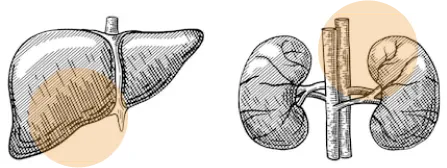 Цирроз печени, геппатит А и Б, почечная недостаточность, пиелонефрит