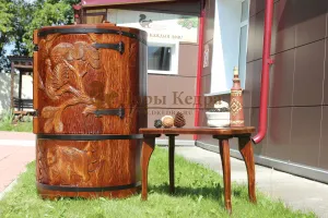 КЕДРОВАЯ БОЧКА С ХУДОЖЕСТВЕННЫМ ОФОРМЛЕНИЕМ