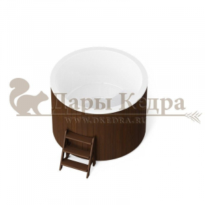 Это купель с круглой внутренней чашей, которая изготовлена из современного прочного и термоустойчивого материала (композита). Форма чаши обеспечивает комфортную посадку внутри изделия. Для удобного использования купель оснащена приставной лестницей. Обручи из нержавеющей стали декорируют купель с композитом и равномерно распределяют нагрузку во время процедур.