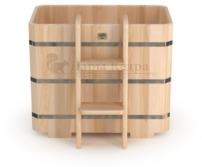 Прямоугольная купель для бани из кедра Представляет собой герметичную емкость для воды из кедра, которая предназначена для отдыха и охлаждения тела после процедур парения. Ширина прямоугольной купели равна ширине стандартных дверных проемов (78 см), поэтому занести в помещение ее можно в собранном виде. Благодаря прямоугольной форме купель хорошо впишется в угол помещения. Так же ее можно установить на улице. Прямоугольная купель оснащена лавочками, приставной и внутренней лестницей из кедра. Обручи из нержавеющей стали плотно прилегают к изделию, что позволяет равномерно распределить нагрузку воды и сохранить форму во время эксплуатации. При правильном уходе купель для бани не рассыхается и не подвергается гниению. При взаимодействии древесины кедра с водой активируются эфирные масла и фитонциды, благодаря чему организм насыщается полезными веществами.